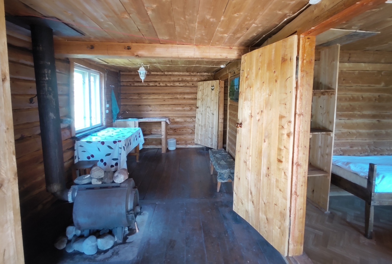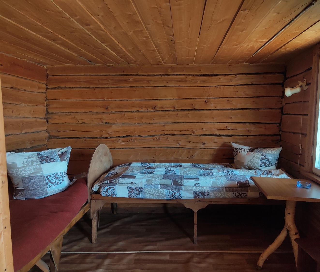 В данном домике размещение Twin (DBL twin) – двухместный номер с двумя отдельными кроватями. Крыльцо домика выходит прямо на берег озера Кета.