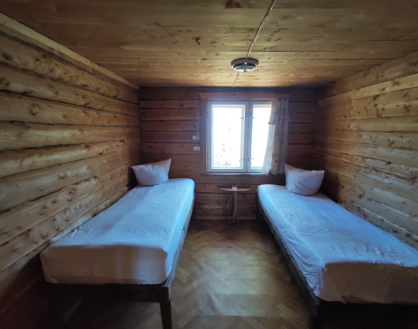 Данный домик позволяет заселиться Apts 2/4 2PAX – две изолированные комнаты с двумя раздельными кроватями. Вместимость до 4 человек. Дом находится в глубине леса, оборудован электричеством.